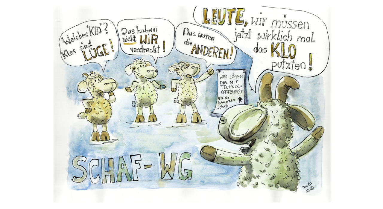 Bock: Okey was hat das nun mit Verantwortungsdifussion zu tun? Denn darum geht es ja in unserer Illustration der "Schaf-WG"?
